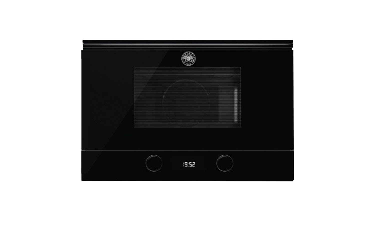 This Bertazzoni Modern Series 60x38 cm microwave oven has 5 power level and 3 functions: microwave, grill and microwave + grill. It is equipped with a 22 liters stainless steel cavity and a ceramic base. It is possible to control functions with the two push and pull knobs. The door has a quiet and controlled electronic opening system mechanism. Available stainless steel and black glass