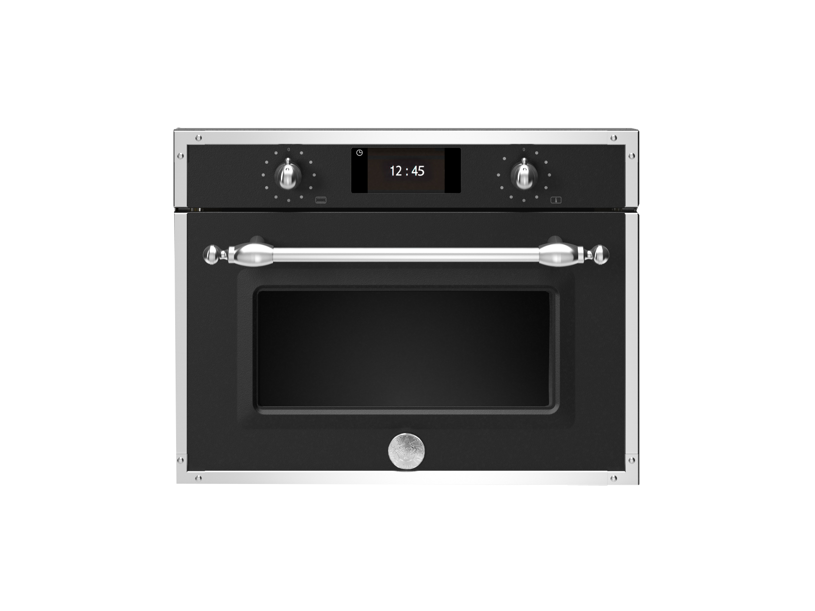 This Bertazzoni Heritage Series 60x45 cm combi steam oven has 7 functions and 38 litre capacity cavity, finished with stainless-steel. With two levels, it can easily cater for the whole family. It combines a traditional oven with convection and grill options. The full steam function offers fast, healthy cooking. Operated with full touch controls and TFT display, there is a soft opening door for ease of use. Available in matt black, nero decor, ivory with stainless steel finish and ivory with copper finish.