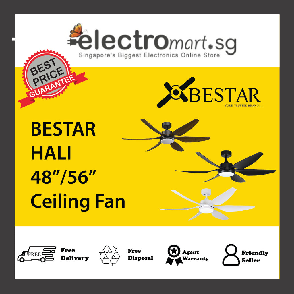 The Bestar HALI is a premium 6-blade ceiling fan designed for expansive living areas or higher-ceiling rooms in Singapore homes. Available in both 48″ and 56″ sizes and stylish finishes, it delivers wide-coverage airflow with a modern aesthetic.