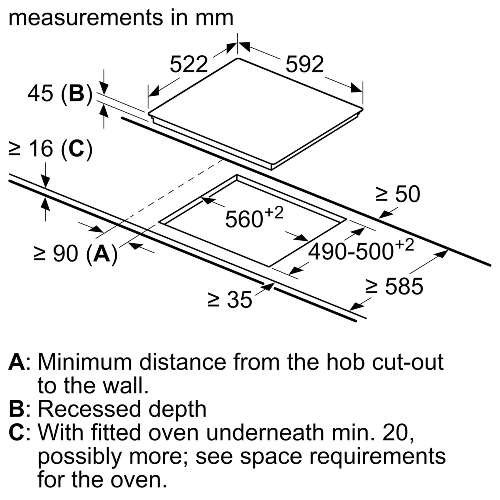 - External dimensions: 45 × 592 × 522 mm; niche size 45 × 560 × 490‑500 mm