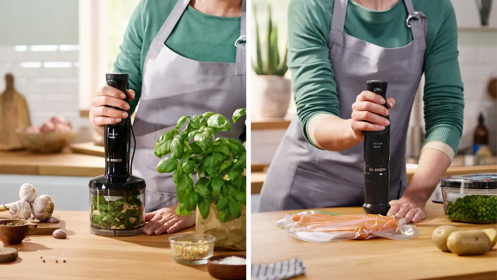 The BOSCH MSM4B670GB is a premium hand blender designed for demanding kitchen tasks in Singapore homes. Featuring a 1000W motor, ergonomic design, and a comprehensive set of accessories, this model makes blending, chopping, and mixing fast and efficient.