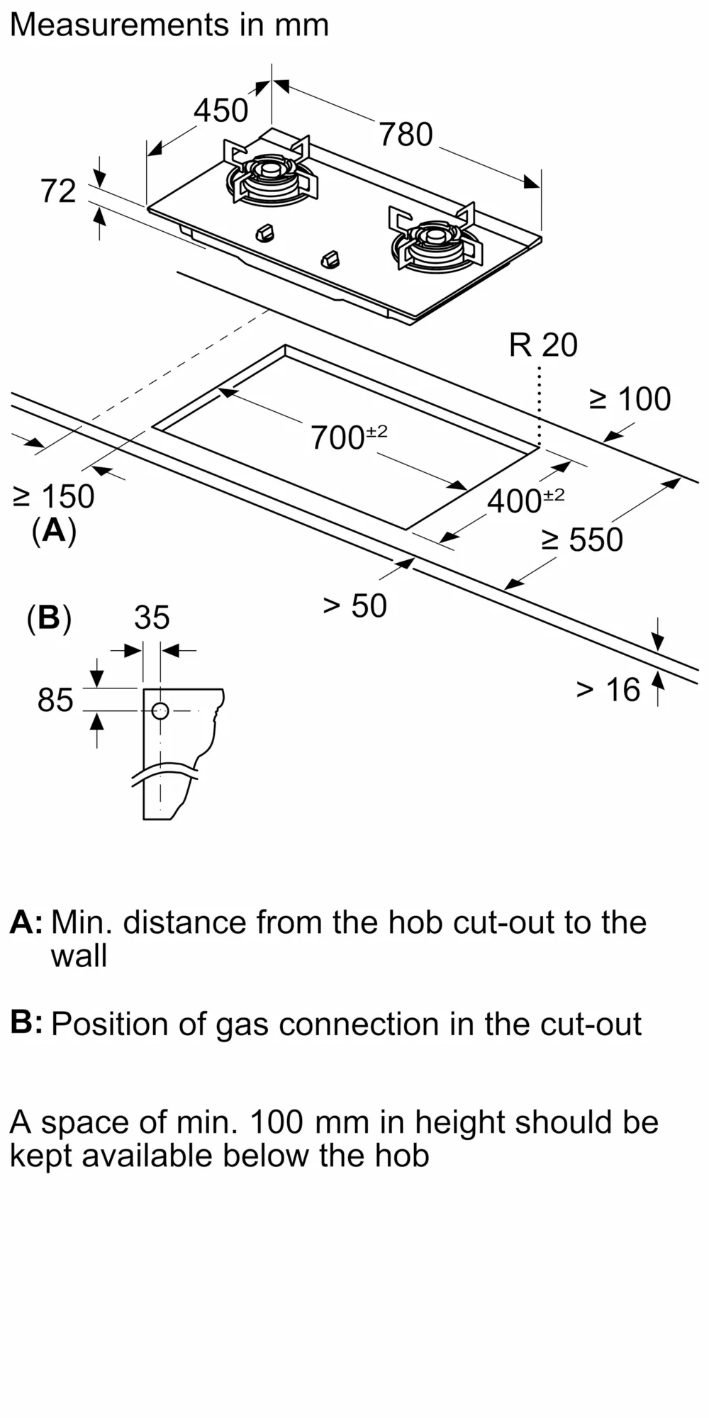 | Cut‑Out Dimensions | 700 × 400 × 80 mm |