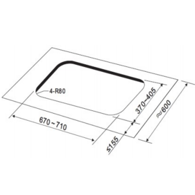 | Cut‑Out (W×D) | 670–710 × 370–405 mm |