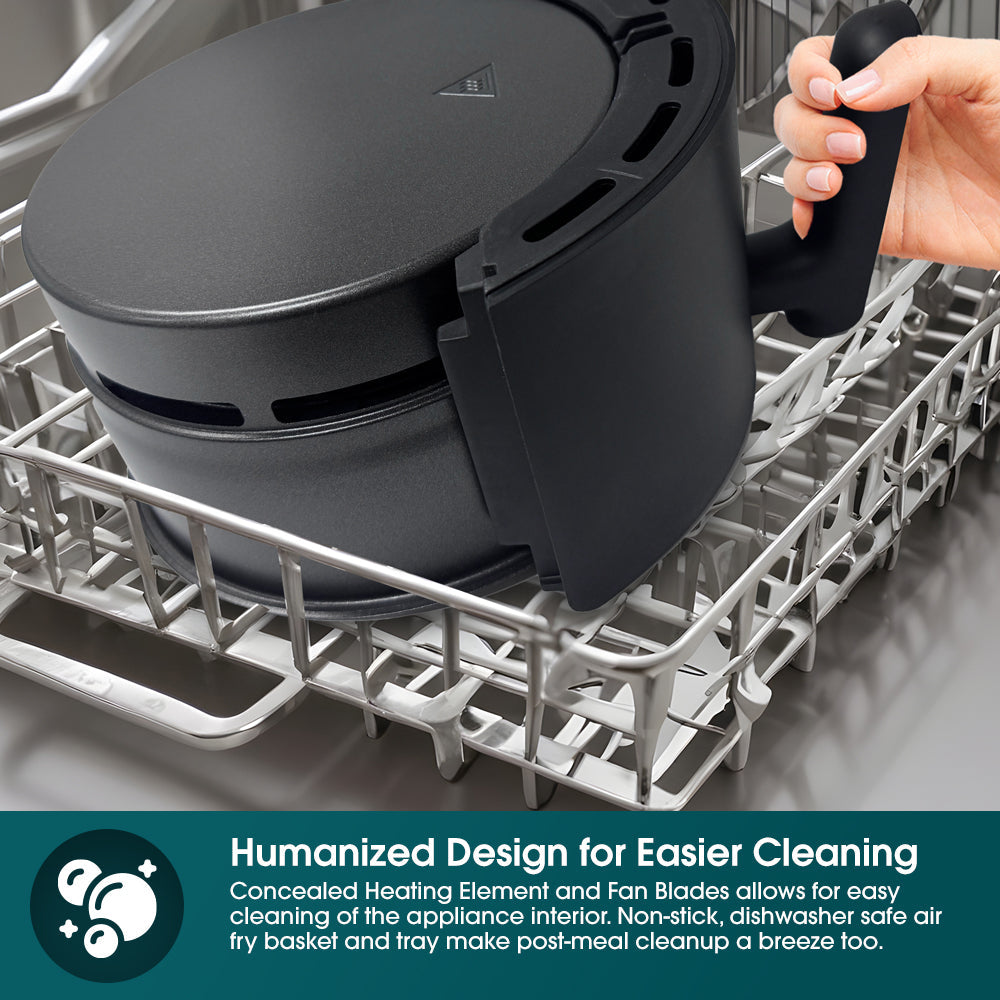 - Bladeless 360° Air Technology: Concealed fan and radiant heat system cooks food faster and more evenly without exposed blades.