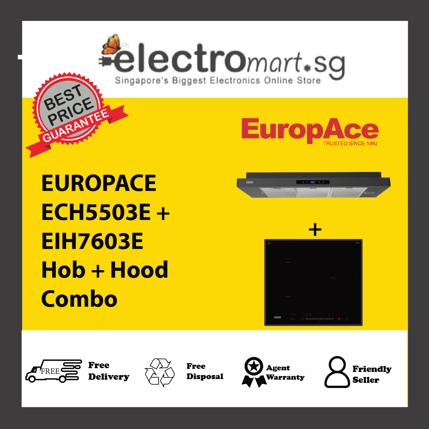 EUROPACE ECH5503E + EIH7603E Hob + Hood Combo