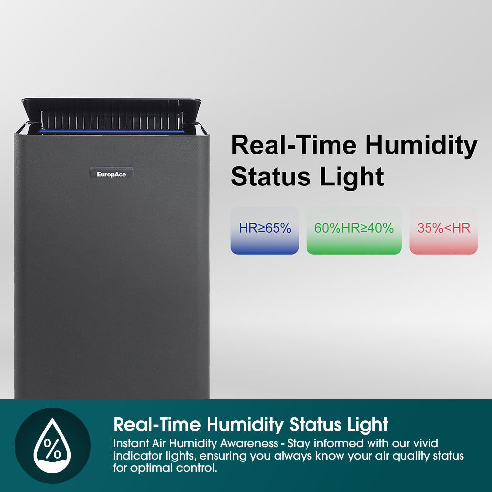 - Real‑Time Humidity Display: Built‑in indicator lights show current humidity for easier monitoring.