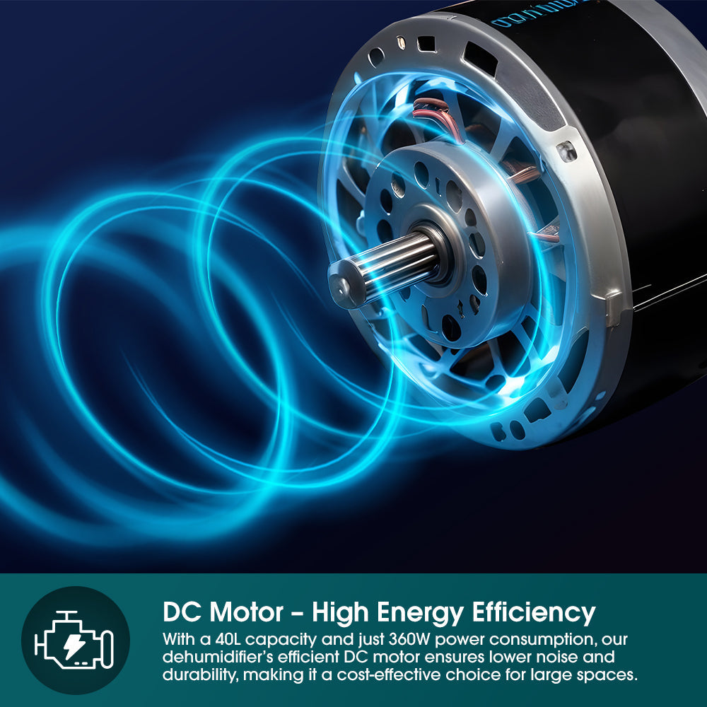 - High Moisture Removal: Removes up to 40 L of moisture per day for effective humidity control in large areas.
