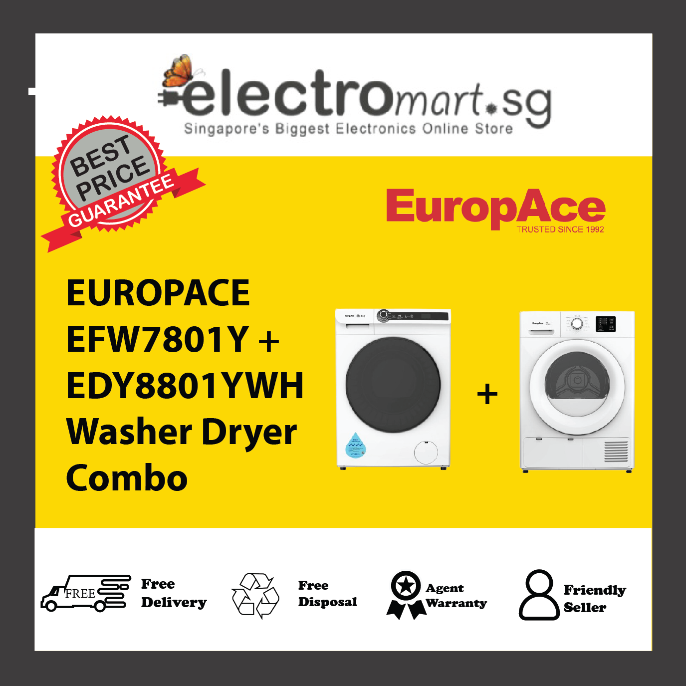 EUROPACE EFW7801Y + EDY8801YWH Washer Dryer Combo