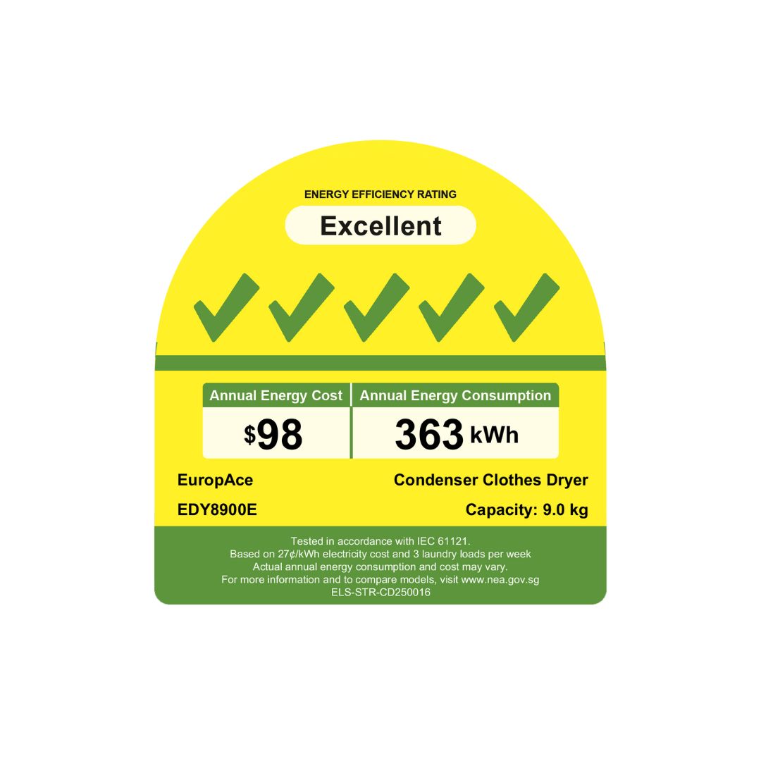 The Europace EDY8900EGM is a 9 kg heat pump dryer designed to deliver energy-efficient drying performance with advanced sensor technology and multiple drying programs. With gentle heat pump operation, wrinkle reduction features and intuitive controls, it’s ideal for busy Singapore households looking to care for a wide range of fabrics.