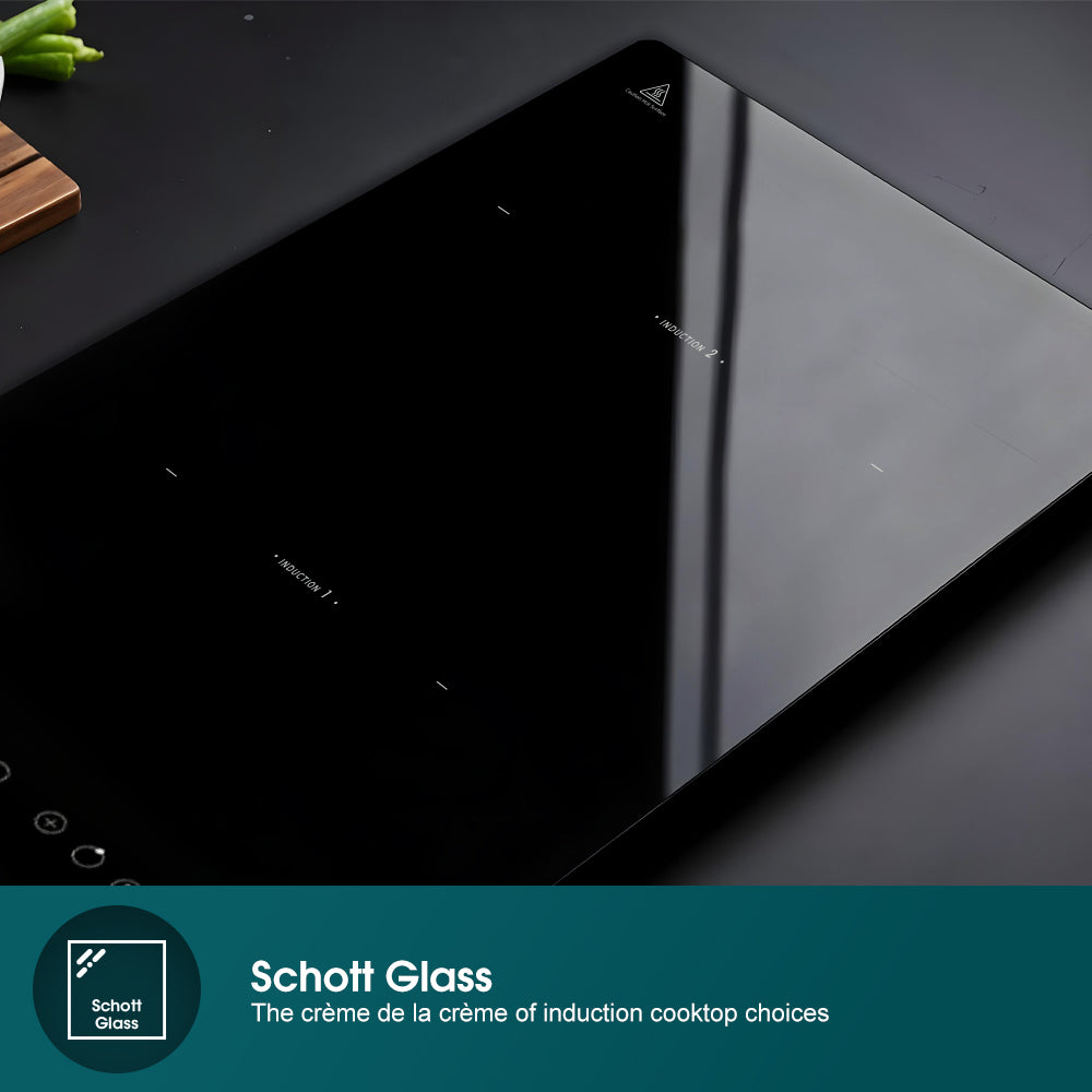 - Surface: Schott Ceran glass with beveled edges — scratch‑resistant and easy to clean