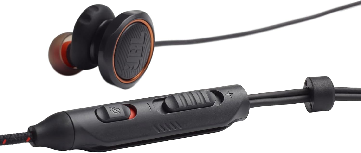 Plug into immersive gaming sound on your PC, console, or mobile device with JBL QuantumSURROUND™, inline volume control, and a voice-focus mic—all in a secure and comfortable in-ear design.