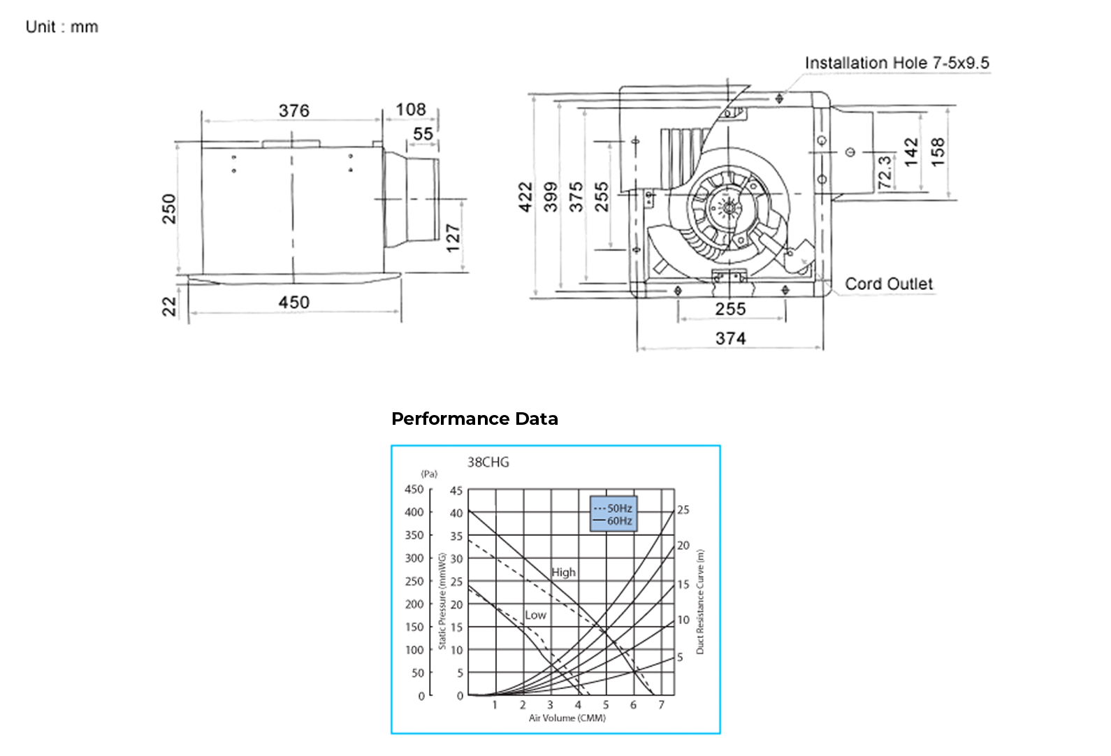 Offering robust airflow in a dual-speed platform and stylish ceiling integration, the 38CHG is perfect for demanding spaces. Its efficient motor, backdraft shutter, and sound-dampening design ensure reliable, comfortable ventilation in larger Singapore rooms.