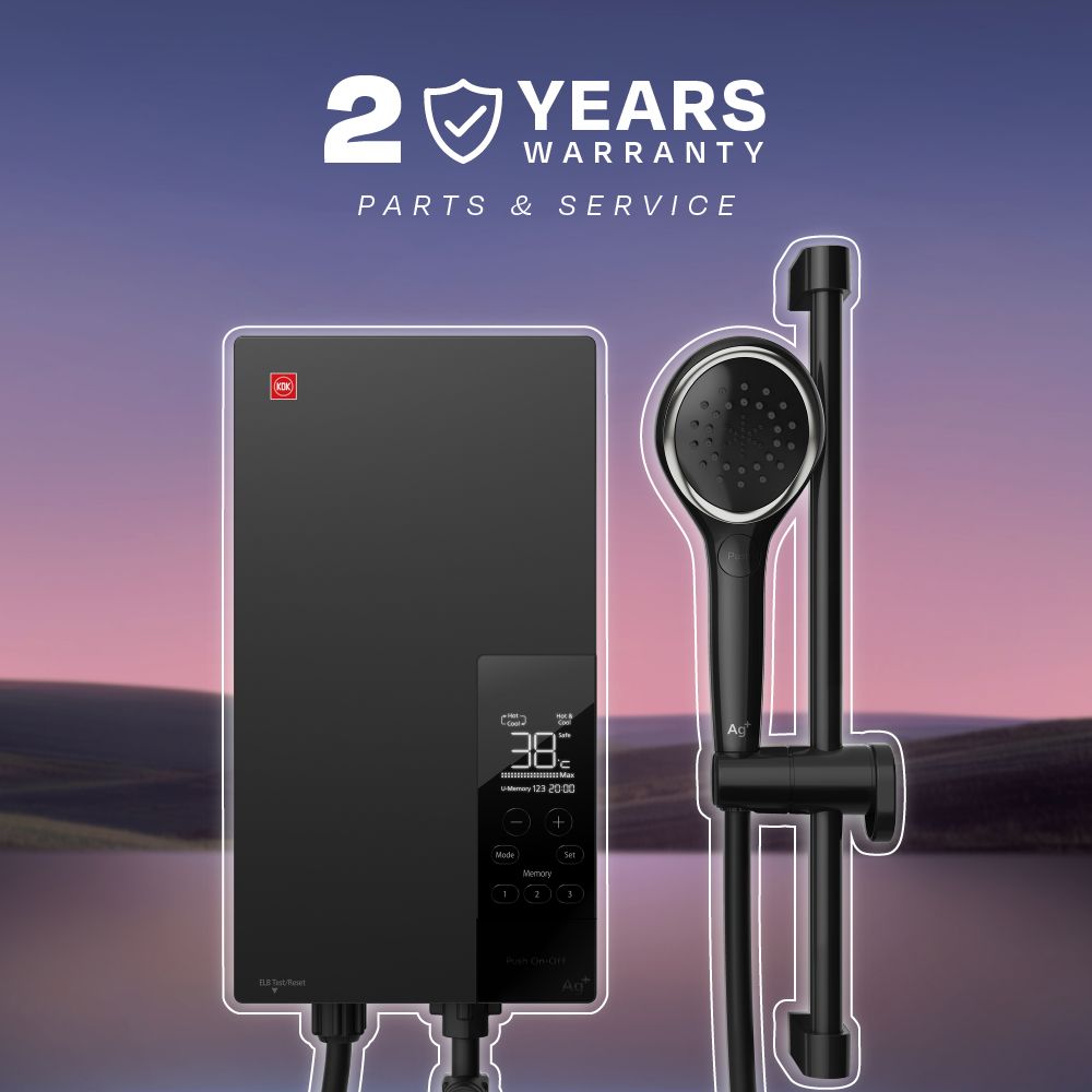 Enjoy personalized shower comfort with the sleek KDK TG3AD1. Featuring an LCD corner panel and advanced memory capability, this unit lets you select from three heating modes and save up to three user presets.
