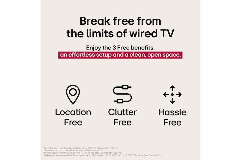- True Wireless TV setup (wireless connection to external devices) for clean installation and minimal cables