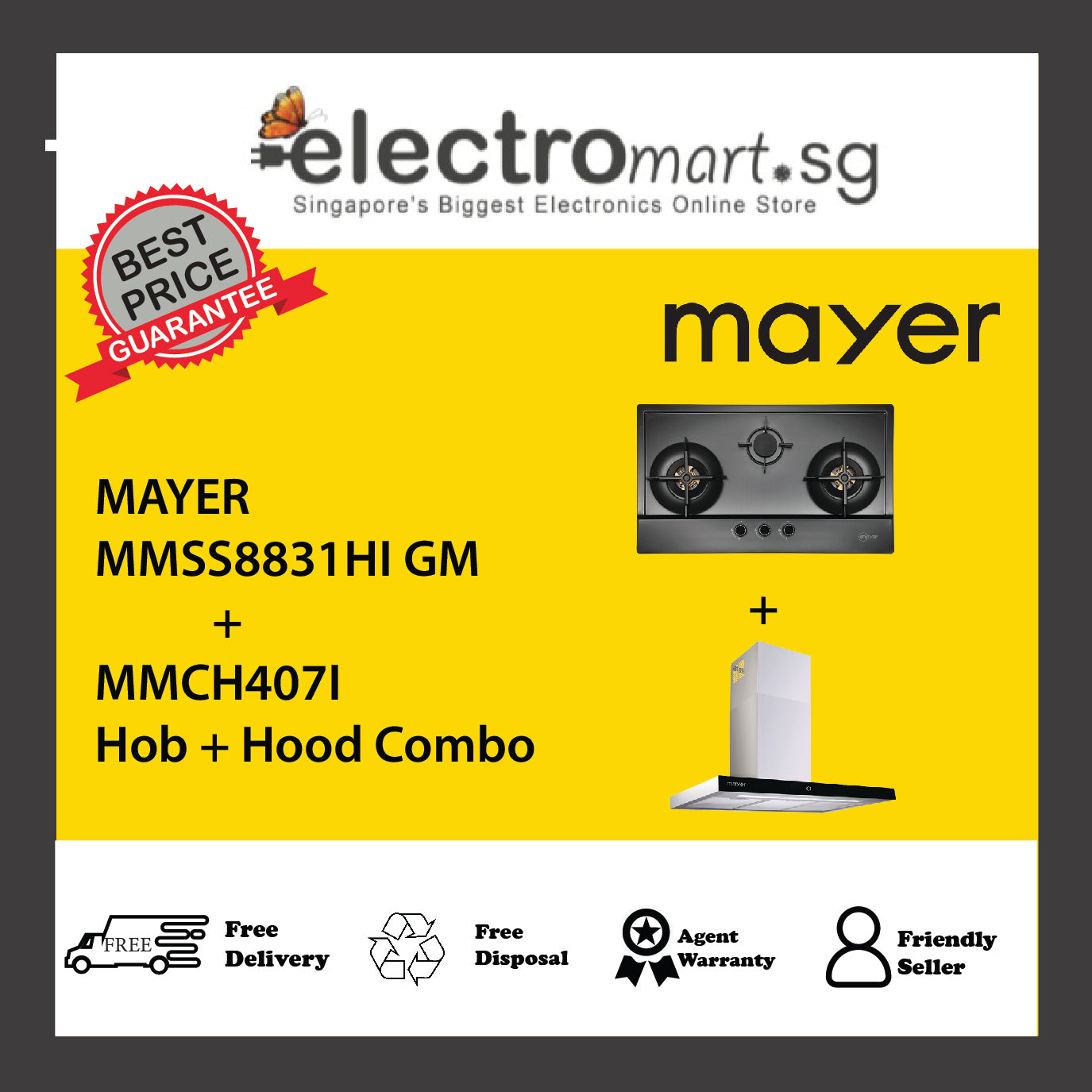 Mayer MMSS8831HI GM + MMCH407I Hob + Hood Combo