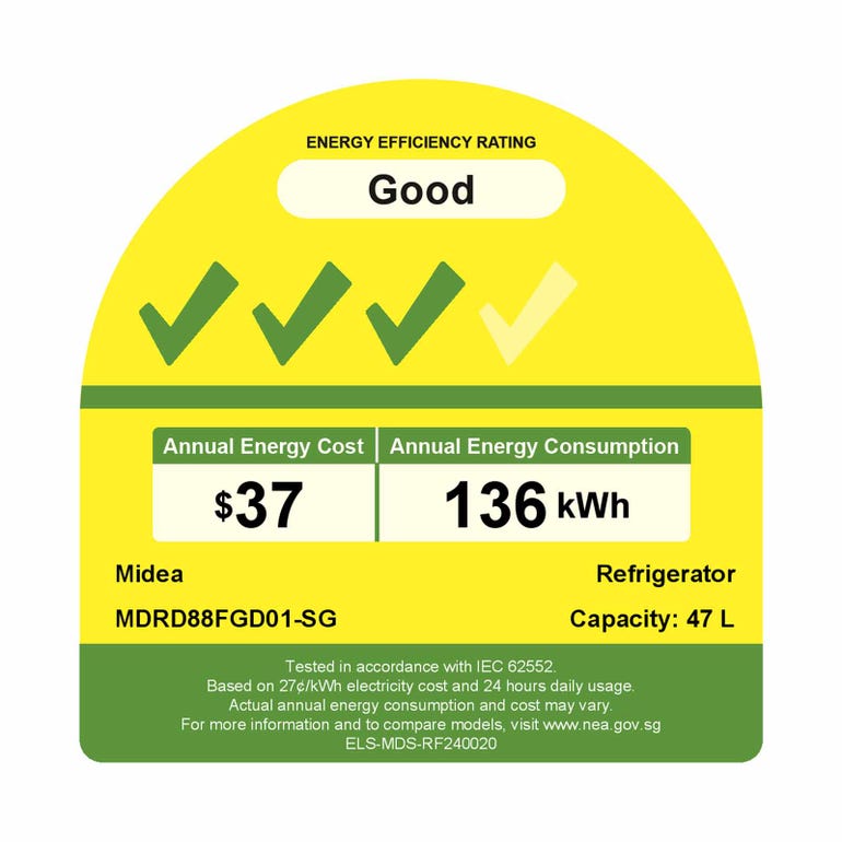 This sleek 47 L bar fridge is perfect for tight spaces—offering smooth rounded styling, a safe self‑closing stainless‑steel hinge, and energy‑efficient cooling with a 3‑tick rating. Ideal for modern living areas, bedrooms, or office setups in Singapore.
