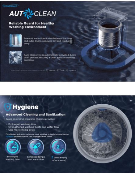 This sleek top-load washer combines advanced anti-mite hygiene, one-touch Smart Wash, and an effective Water Cube Tub design. With Auto Clean and multiple program options, it brings convenience and cleanliness to everyday Singapore laundry routines.