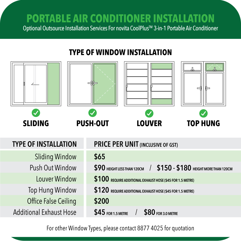 The Novita Coolplus™ NAC12000UV‑i is a high-performance 3‑in‑1 portable air conditioner that cools, dehumidifies, and ventilates. Featuring UV‑C LED sterilisation and blue‑fin cooling with fogging technology, it rapidly cools your room while eliminating bacteria and maintaining efficiency. Easy window setup and fully portable, this unit is ideal for Singapore’s hot and humid climate.