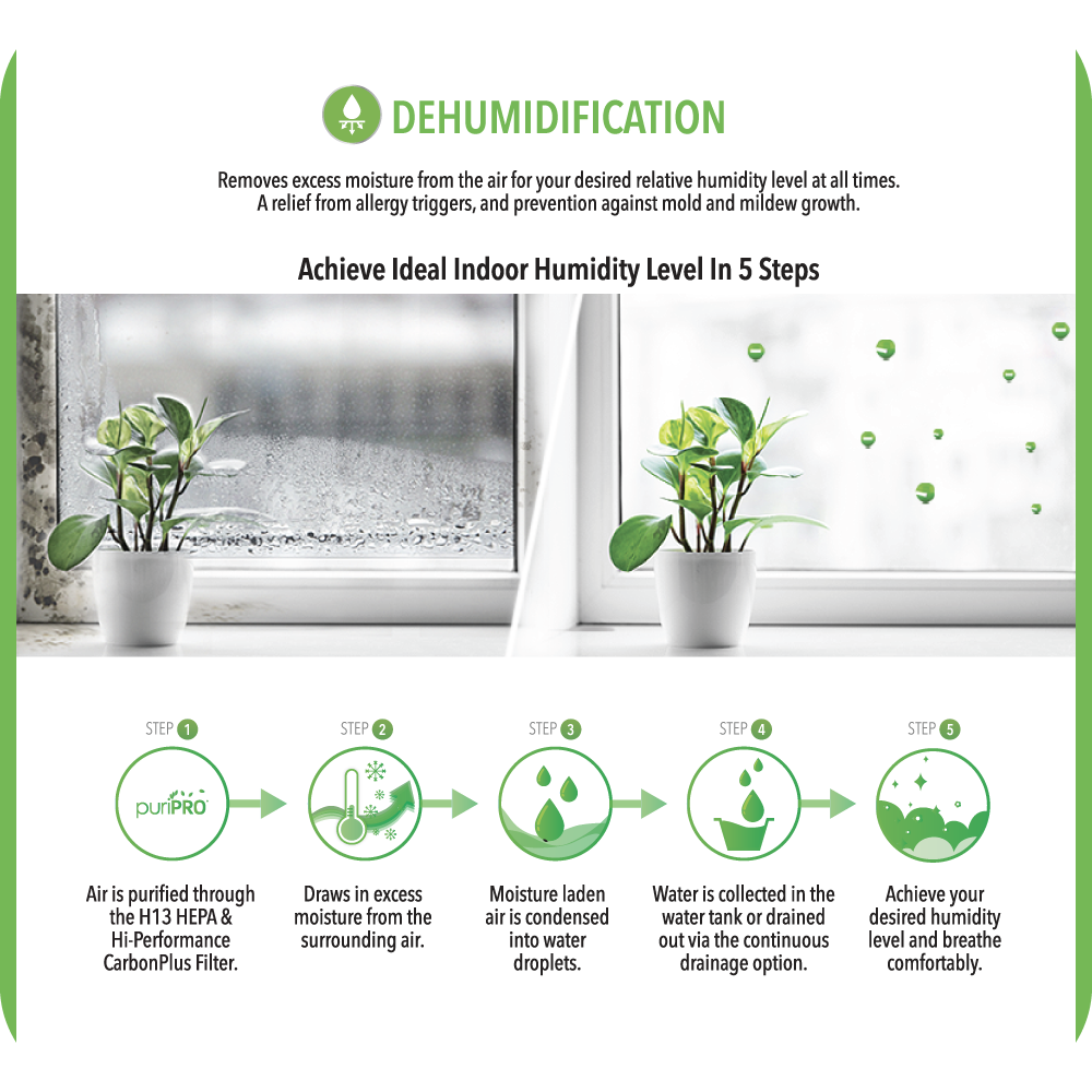 - High-capacity 2-in-1 dehumidifier and air purifier