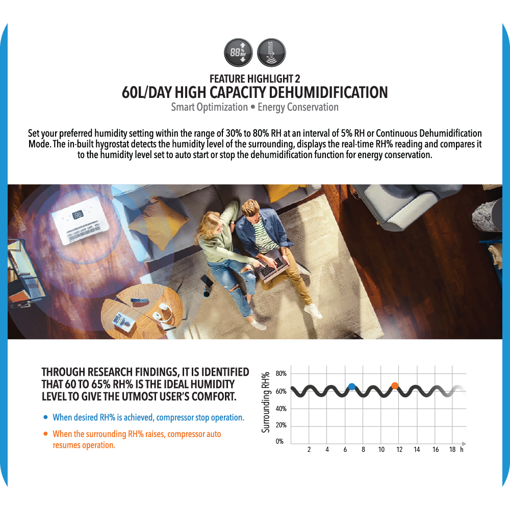 | Dehumidifying Capacity | Up to 60 litres/day* |