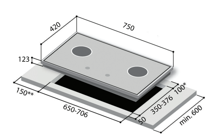 | Cut-Out Size (W × D) | 650–706 × 350–376 mm |
