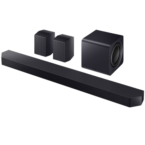 Experience immersive, room-filling audio with this flagship system—complete with wireless subwoofer and rear speakers, AI sound calibration, and seamless integration with Samsung TVs.