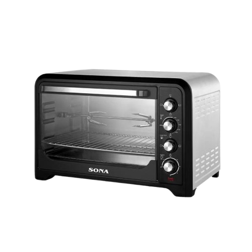 The SONA S425 offers a spacious 42 litre interior with powerful 2000 W heating. It features convection fan cooking and a rotisserie spit for grilling. The oven includes a 60-minute timer, wide-angle glass door, power-on indicator, and thermal fuse safety for secure, versatile cooking up to 250 °C.