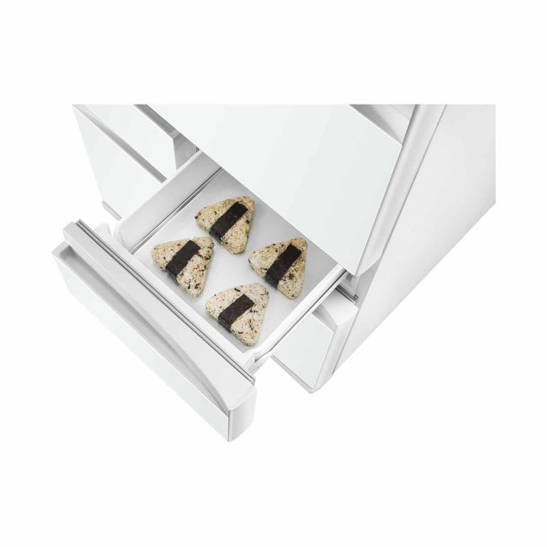 This 451 L multi‑door refrigerator in Fuji White Glass combines Dual Cooling System, Origin Inverter compressor, Nano Titanium purification, HydroFRESH humidity drawer, and fast ice-making technology for energy-efficient, hygienic food storage.